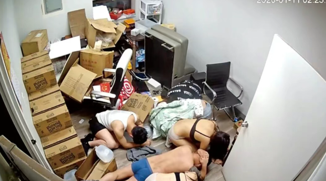 多名男性被迫脱到只剩一条内裤,女性则仅剩文胸和内裤,场面极度羞辱、狼狈不堪。更令人不安的是,其中一名女性在被迫脱光后,还被歹徒按住头部拉出房间,具体遭遇目前尚不清楚。